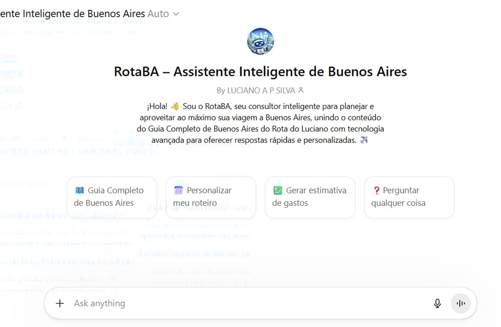 O RotaBA é um GPT personalizado, treinado com o conteúdo do meu guia e com a minha experiência prática em Buenos Aires.