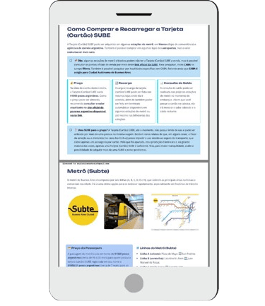 Cada seção do Guia Buenos Aires Inteligente foi organizada em guias intuitivos e atualizados, que mostram exatamente o que precisa ser feito em cada etapa do planejamento da viagem.